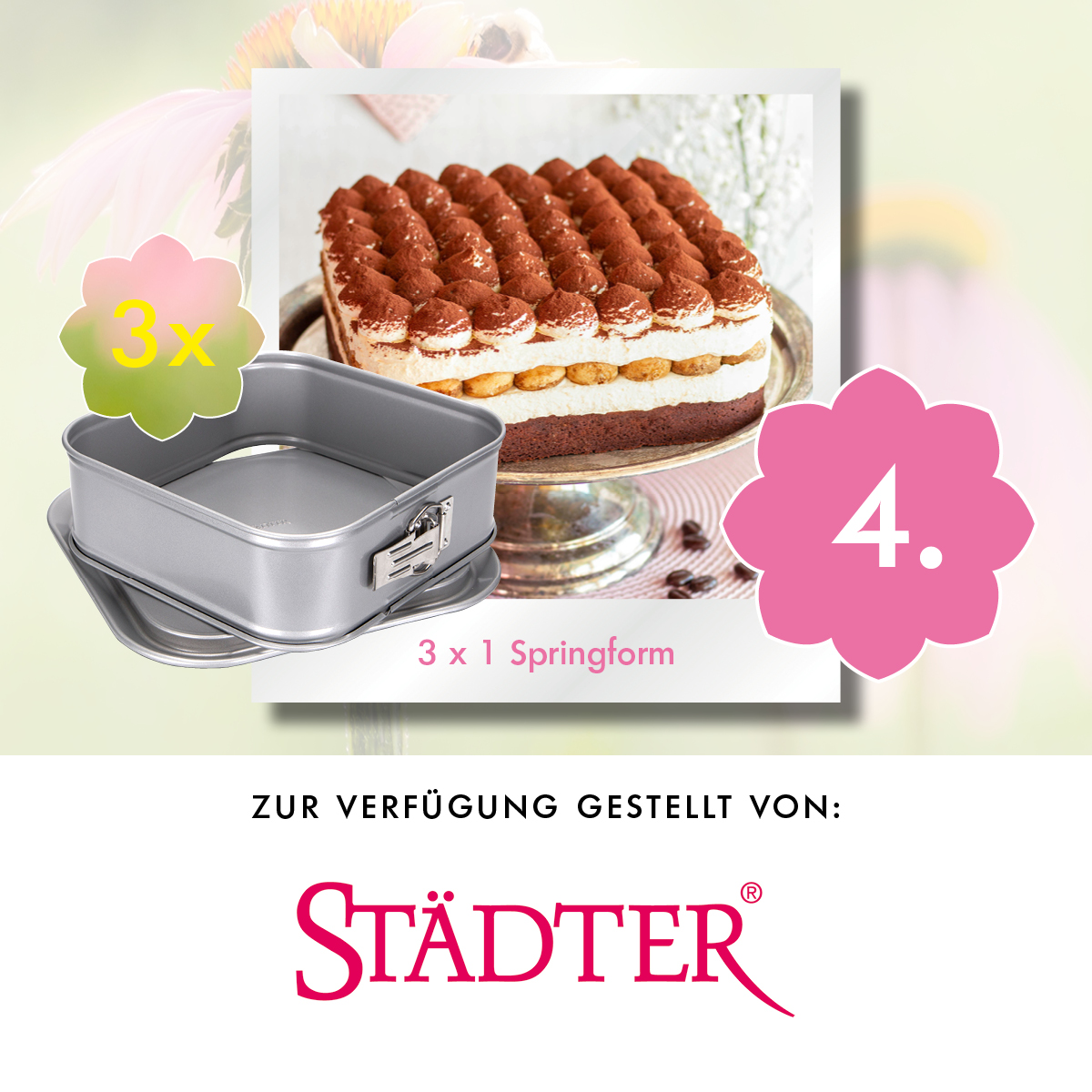 Neuer Auftritt für den Back-Klassiker: Die runde Springform von STÄDTER aus der „We-lovebaking- Serie“ ist jetzt quadratisch, was ganz neue Möglichkeiten für Präsentation und Dekoration eröffnet. Mit hochwertiger Antihaft-Beschichtung und auslaufsicherem Flachboden.